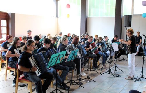 Zu Gast war das BERNHARD.T.INER Akkordeonorchester der Musikschule Fröhlich aus Leipzig. Mit weit über 30 Akteuren wurde in der Festscheune ein buntes Potpourri aus verschiedenen Musikrichtungen dargeboten. Vom Gospel-Medley bis hin zum weltbekannten Song von Roland Kaiser & Maite Kelly „Warum hast du nicht nein gesagt“, war alles dabei, was das musikalische Herz höherschlagen lässt. Es wurde getanzt, geschunkelt, geklatscht und an mancher Stelle sogar mitgesungen. Im Anschluss des Konzertes konnte man den Nachmittag bei Kaffee & Kuchen vor Noah´s Arche ausklingen lassen. Wir danken dem Förderverein „Freunde von Schloß Hoym e.V.“ für diesen tollen Nachmittag.
