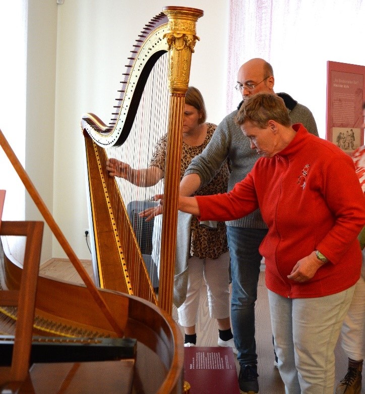 So fuhren wir am 19.09.23 ins KLOSTER MICHAELSTEIN bei Blankenburg in die Musikausstellung „KlangZeitRaum“. Schon das Ankommen und Durchschreiten der alten Gemäuer war für uns interessant. Die Geschichte des Klosters geht immerhin bis ins 9. Jahrhundert zurück. Aber unser Interesse galt eher der Ausstellung. Herr Günther, ein Mitarbeiter des Klosters, führte uns all die alten Instrumente vor und erklärte uns, wie Töne entstehen. Mal braucht es zum Erzeugen der Klänge Luft, mal einen Anschlag, mal wird eine Saite in Schwingung versetzt… Auch selbstspielende Klaviere oder große Spieluhren gab es schon vor vielen Jahren. Das Weihnachtsoratorium wurde angespielt und einige konnten sogar die ersten Textzeilen mitsingen! Unser Interesse war sehr groß, was wir auch mehrmals gegenüber Herrn Günther äußerten. Und jemand sagte sogar: „Herr Günther, das ist hier die beste Musikschule, die es auf der Welt gibt!“.