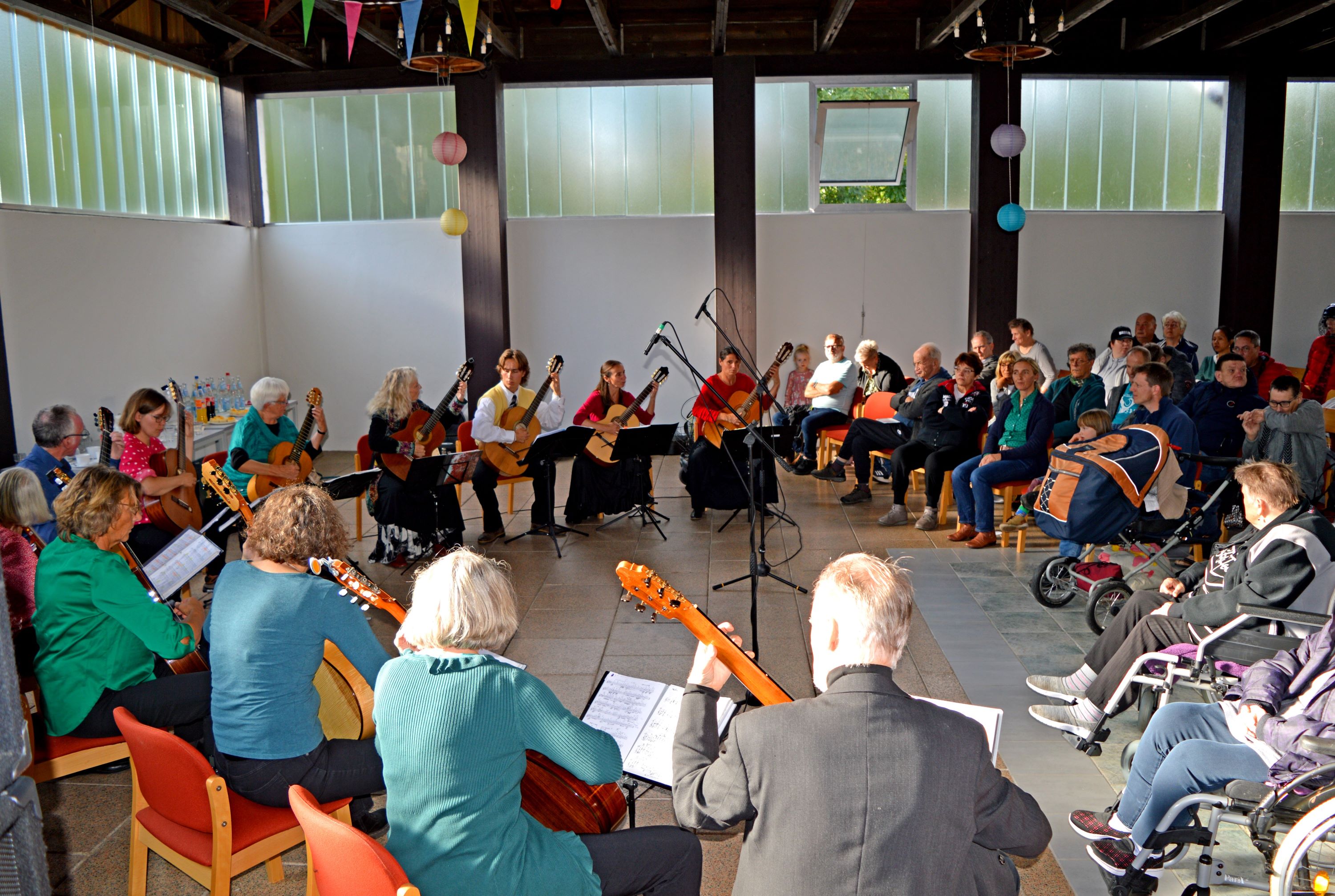 Am 27.09.2024 war das Eutiner Gitarrenorchester zu Gast in der Schloß Hoym Stiftung und bereitete den Bewohnern sowie externen Besuchern einen tollen Nachmittag. 12 Musiker boten ein klassisches und folkloristisches Konzertprogramm. Rund 100 Besucher nahmen am musikalischen Angebot teil und genossen die wunderschönen Klänge der Gitarren. Die musikalische Darbietung sorgte für eine entspannte und fröhliche Atmosphäre, die bei allen Teilnehmern großen Anklang fand. Es war ein rundum gelungener Tag, der noch lange in unseren Erinnerungen bleiben wird.