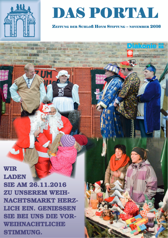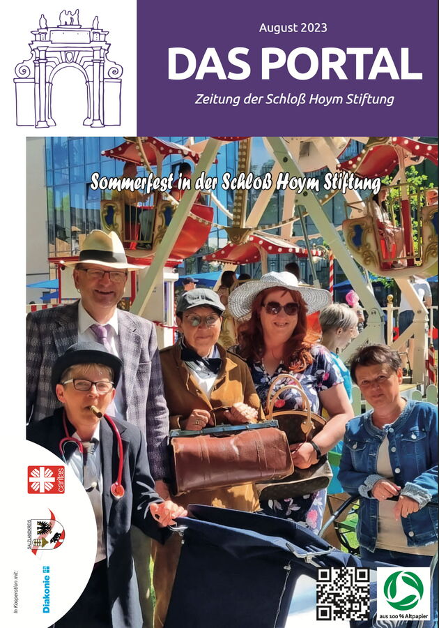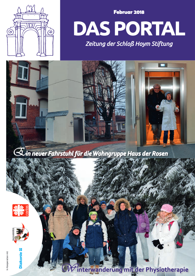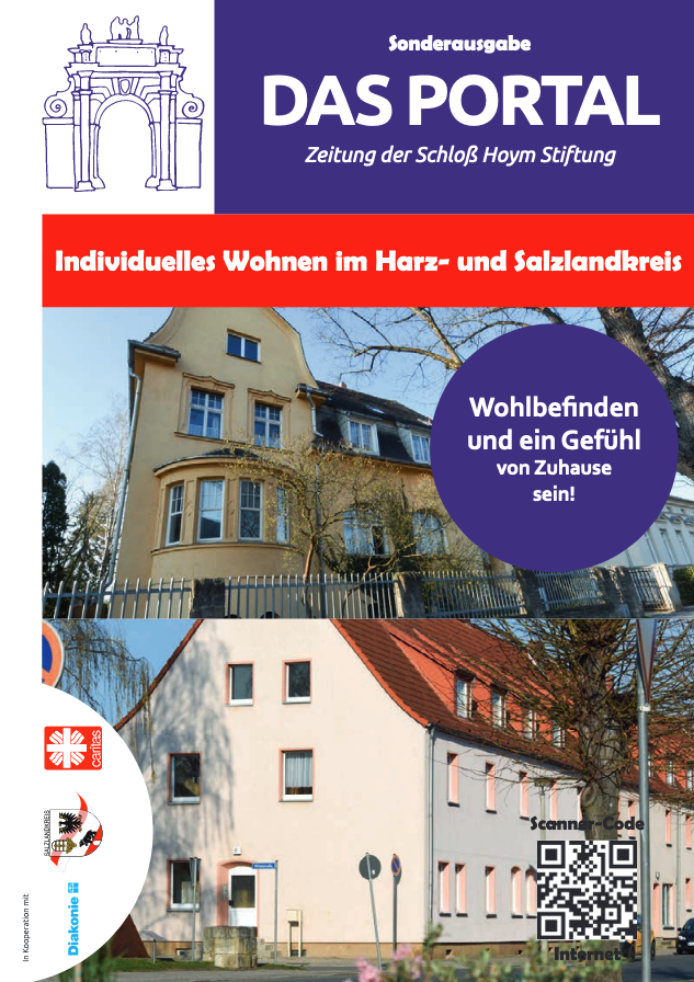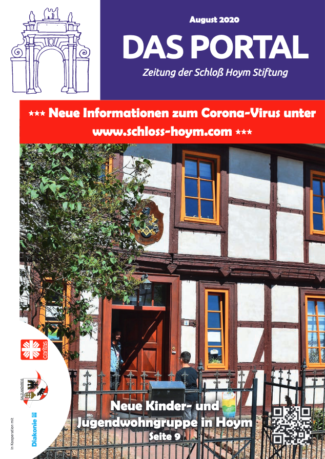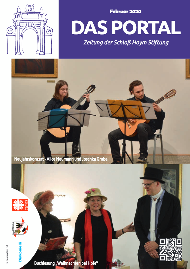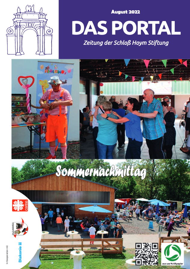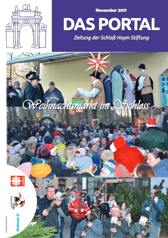 "Das Portal" ist das Magazin der Schloß Hoym Stiftung und erscheint einmal im Quartal. Unsere Zeitung berichtet über aktuelle Themen, Aktivitäten sowie Veranstaltungen der Schloß Hoym Stiftung und versorgt Sie mit Informationen über das Leben in der Schloß Hoym Stiftung.