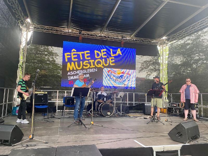 Am 21.06.2023 hatte die integrative Band der Schloß Hoym Stiftung "FaFaJaCs", einen Auftritt auf großer Bühne: In Aschersleben auf der Fête de la Musique, in der Orangerie im Bestehornpark, wurde bei herrlichstem Sommerwetter der Sommersonnenwendetag gefeiert.