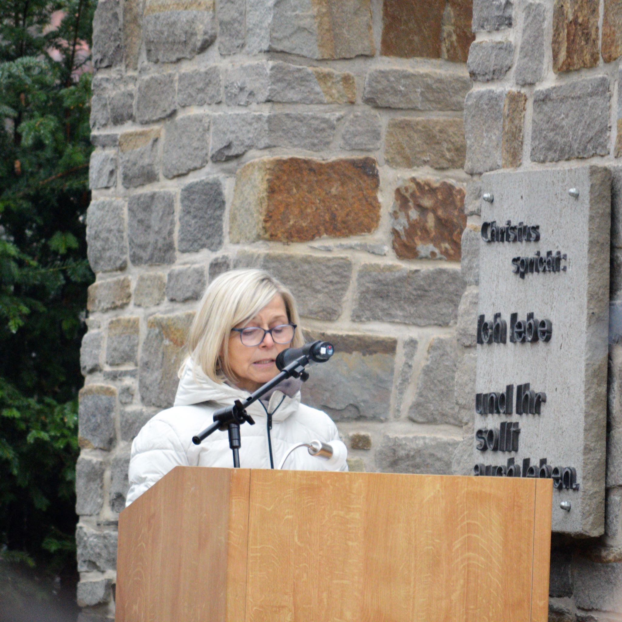 Der Geschäftsführer René Strutzberg eröffnete die Gedenkveranstaltung für die Opfer des Nationalsozialismus mit der Geschichte von Schloß Hoym und bedankte sich beim Förderverein „Freunde von Schloß Hoym e.V.“ und bei Adrian Maerevoet, dem ehemaligen Landesbehindertenbeauftragten Sachsen-Anhalts, für die Förderung der Stolperplatten. Mitarbeiter Falk Heyer begleitete mit Musikstücken auf dem Kontrabass und der Gitarre die Gedenkstunde. Dr. Sabine Schnierer hat die Geschichte von Emmy Luise Buchmann recherchiert und den leidvollen Lebensweg der jungen Frau bewegend beschrieben. Die Stolperplatte für Emmy Luise Buchmann wurde auf dem Stolperplattenpfad von dem stellvertretenden Bewohnerbeiratsvorsitzenden Klaus Janiska verlegt. Das geistliche Wort und Gottes Segen sprach Kreisoberpfarrer Dr. Theodor Hering.