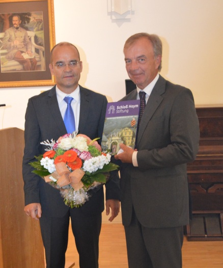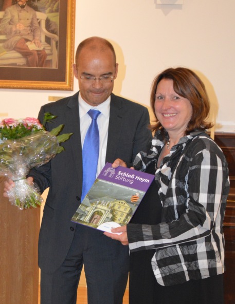 Frau Heike Brehmer und Herr Thomas Leimbach wurden von dem Geschäftsführer René Strutzberg mit einer Sonderausgabe über Hoym/Anhalt u.a. mit Bildern von Herrn Dietrich Genau geehrt.
