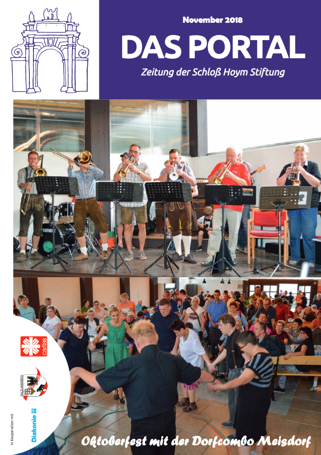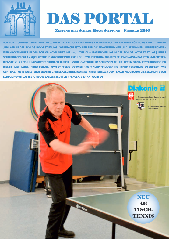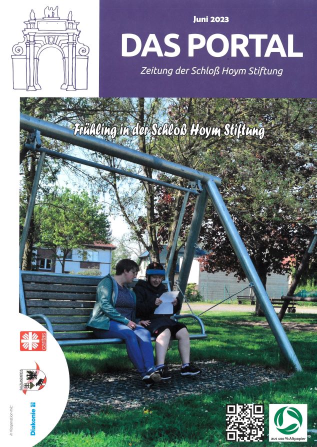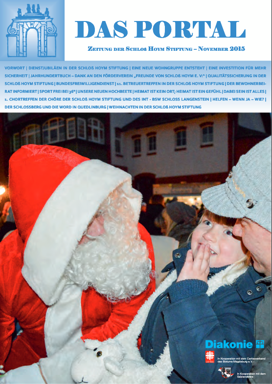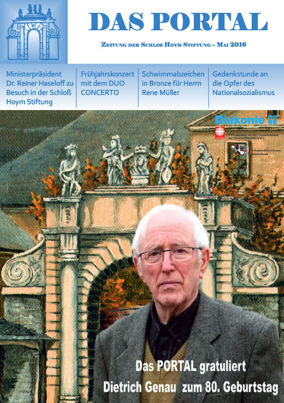"Das Portal" ist das Magazin der Schloß Hoym Stiftung und erscheint einmal im Quartal. Unsere Zeitung berichtet über aktuelle Themen, Aktivitäten sowie Veranstaltungen der Schloß Hoym Stiftung und versorgt Sie mit Informationen über das Leben in der Schloß Hoym Stiftung.